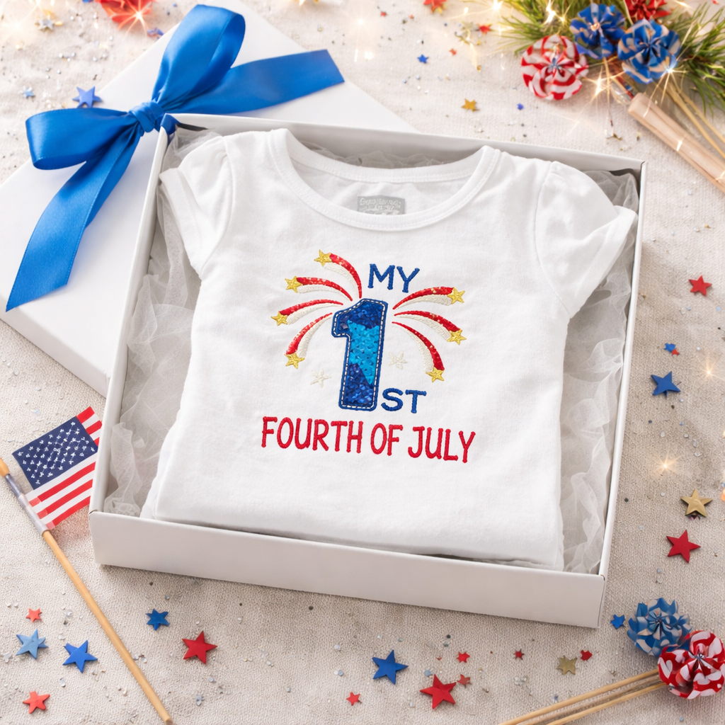 Celebrate Independence Day in style with our exclusive girl’s Fourth of July shirt!